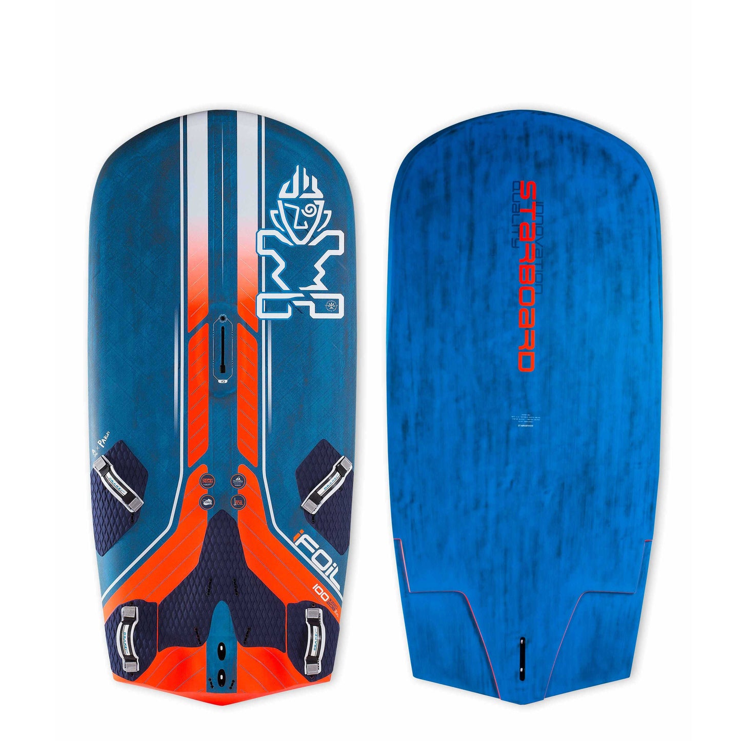 - FOOTSTRAPS - The iQFoil range comes with a the latest generation of Drake Ultralight straps. These straps are ideal for foiling when foot pressure is lighter than regular windsurfing. The Ultralight’s elongated screw slots also allow the rider to set their back strap extra-wide using hole spacings further apart. This allows the rider’s foot to shift forward for downwind and backwards for upwind, giving perfect trim-adjustment on the fly.